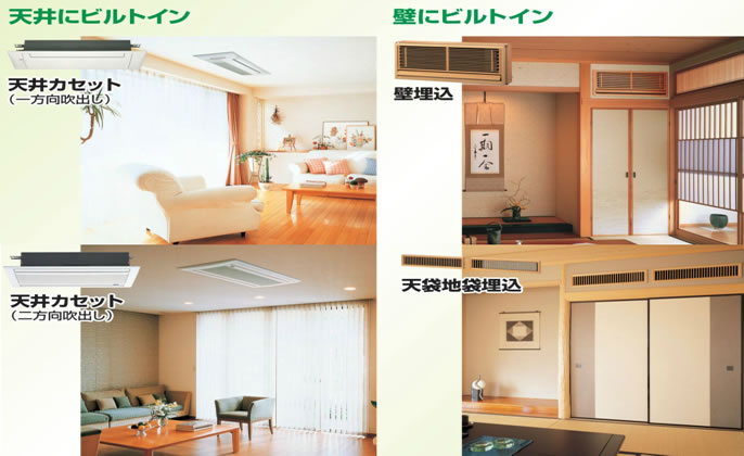 住宅用エアコンと言いましても、よく見かける壁に掛かっていたり床置きタイプだけではございません。