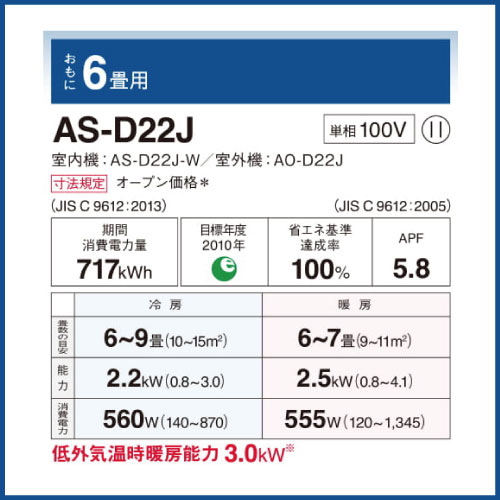 AS-D22J 富士通ゼネラル nocria Dシリーズ 壁掛形 6畳程度